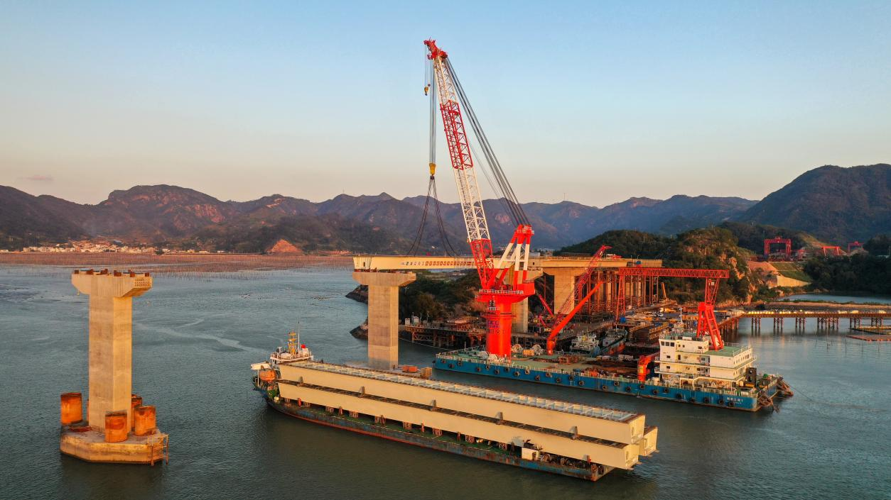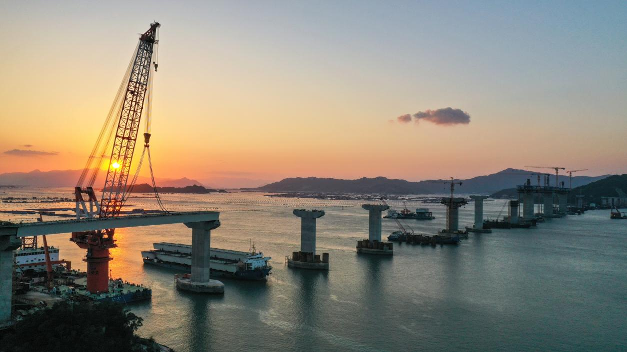 東吾洋特大橋是福建寧上高速項(xiàng)目的控制性工程,該橋位于福建寧德市霞浦縣境內(nèi),橫跨東吾洋,大橋全長(zhǎng)2546.6m,主橋?yàn)?/font>矮塔斜拉橋,通航孔橋長(zhǎng)560m,采用獨(dú)特的跨徑為100m+(2×180)m+100m的設(shè)計(jì);非通航孔橋的結(jié)構(gòu)形式為槽型鋼梁+預(yù)制橋面板的等高單箱單室鋼混組合連續(xù)箱梁橋。施工海域最大水深63m,最大潮差達(dá)8m,該橋樁基處于海域環(huán)境復(fù)雜的東吾洋海域,具有超深水高潮差、嵌巖深度深等特點(diǎn)。樁基樁長(zhǎng)最長(zhǎng)達(dá)到罕見的144m,嵌巖深度達(dá)10.4m,鉆孔深度達(dá)155.53m,一舉刷新國內(nèi)Φ4.0m大直徑嵌巖鉆孔灌注樁最深紀(jì)錄,為同類型橋梁水深世界之最。